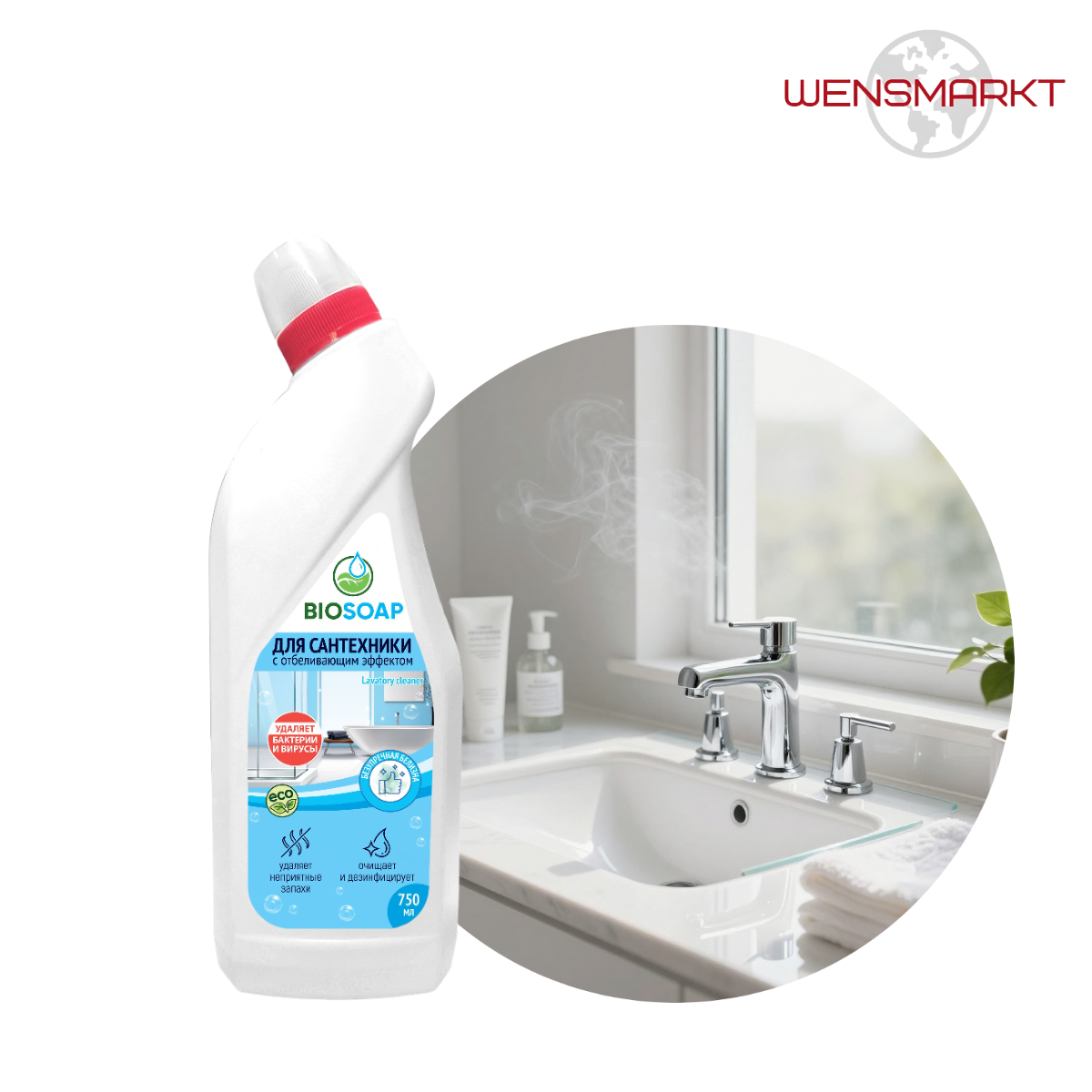 Специализированное средство для удаления сложных загрязнений с сантехники. Формула с активным кислородом отбеливает и дезинфицирует поверхности, удаляет ржавчину и известковый налёт.