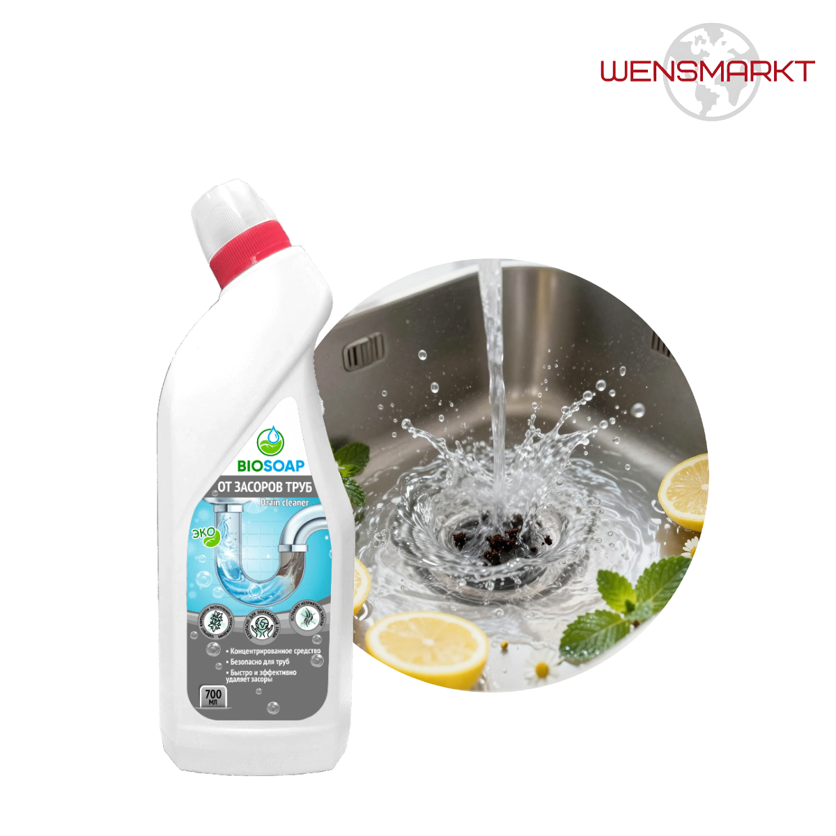 Гель для быстрого растворения органических засоров в трубах: волосы, жир, остатки пищи. Эффективно прочищает сливы раковин, ванн, душевых кабин и унитазов.