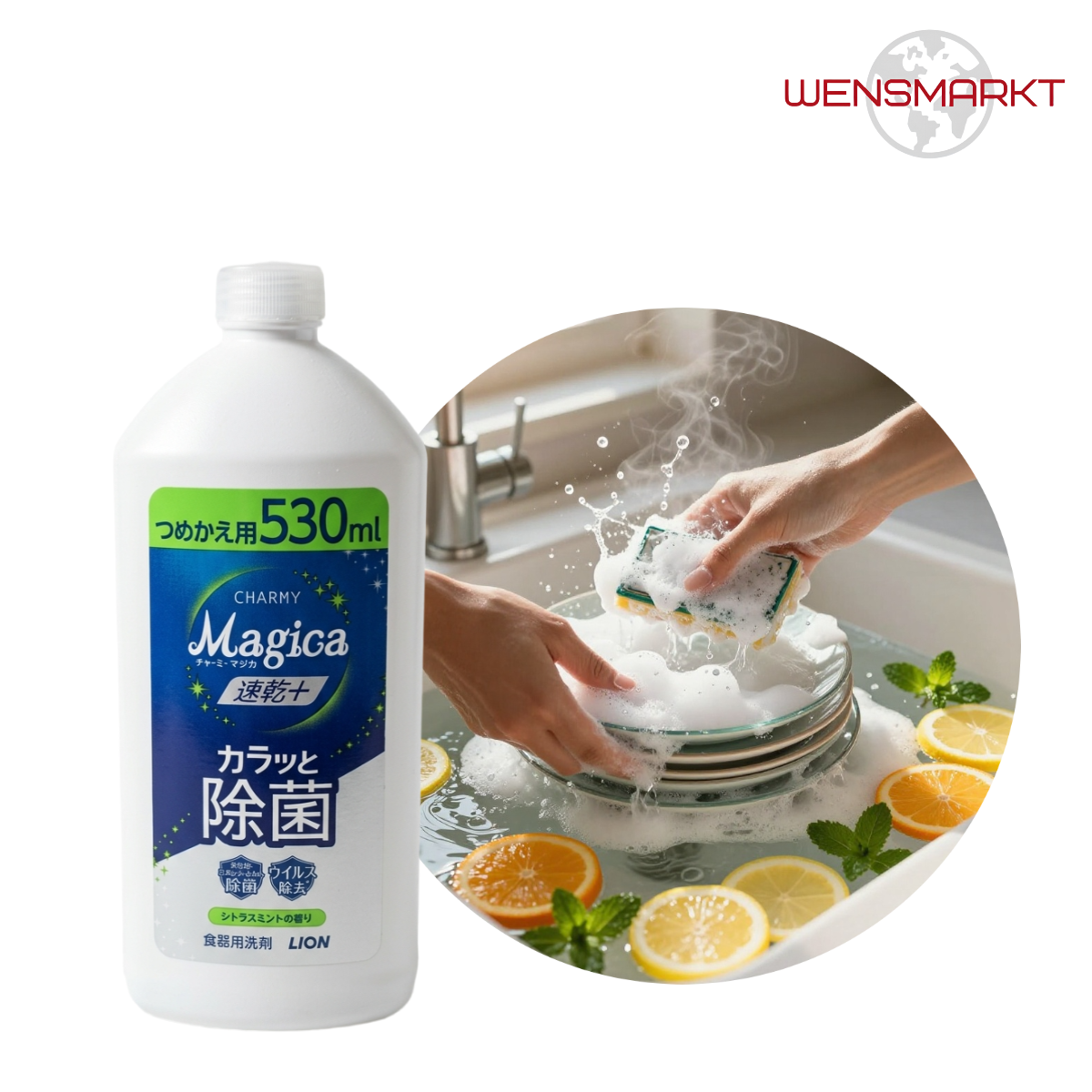 Lion Charmy Magica+ — высококонцентрированное средство для ручного мытья посуды. Обеспечивает превосходное пенообразование и легкое смывание. Технология быстрого высыхания предотвращает разводы.