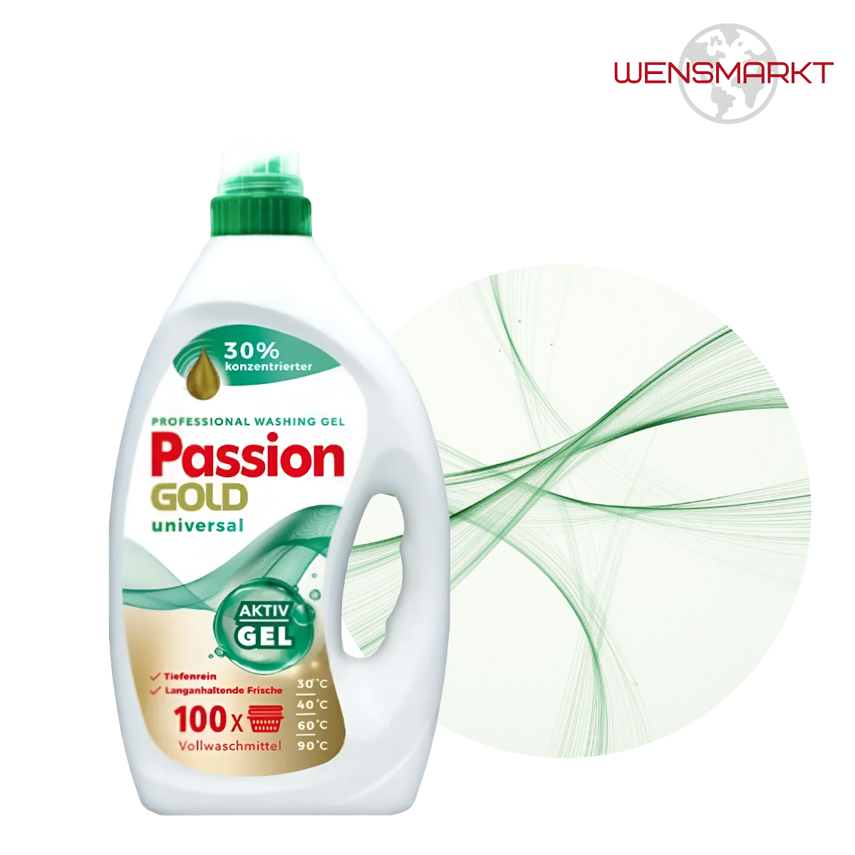 Passion GOLD универсальный — высококонцентрированный гель для стирки белого и цветного белья. Обеспечивает эффективное удаление пятен, защиту цвета и уход за тканью. Большой упаковки хватает примерно на 100 стирок.