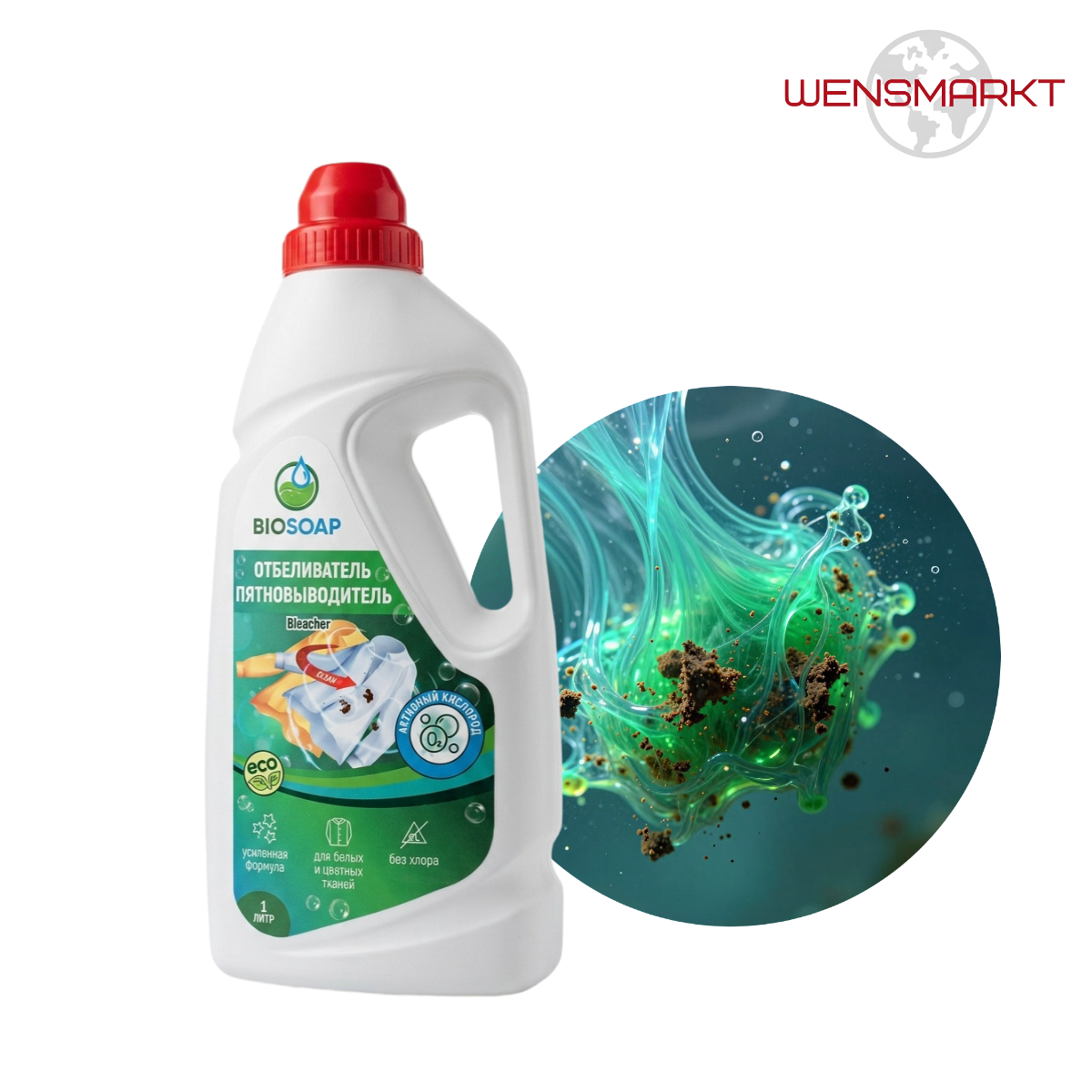 Кислородный отбеливатель-пятновыводитель для белого и цветного белья. Эффективно удаляет сложные пятна, возвращает белизну и свежесть тканям без использования хлора.