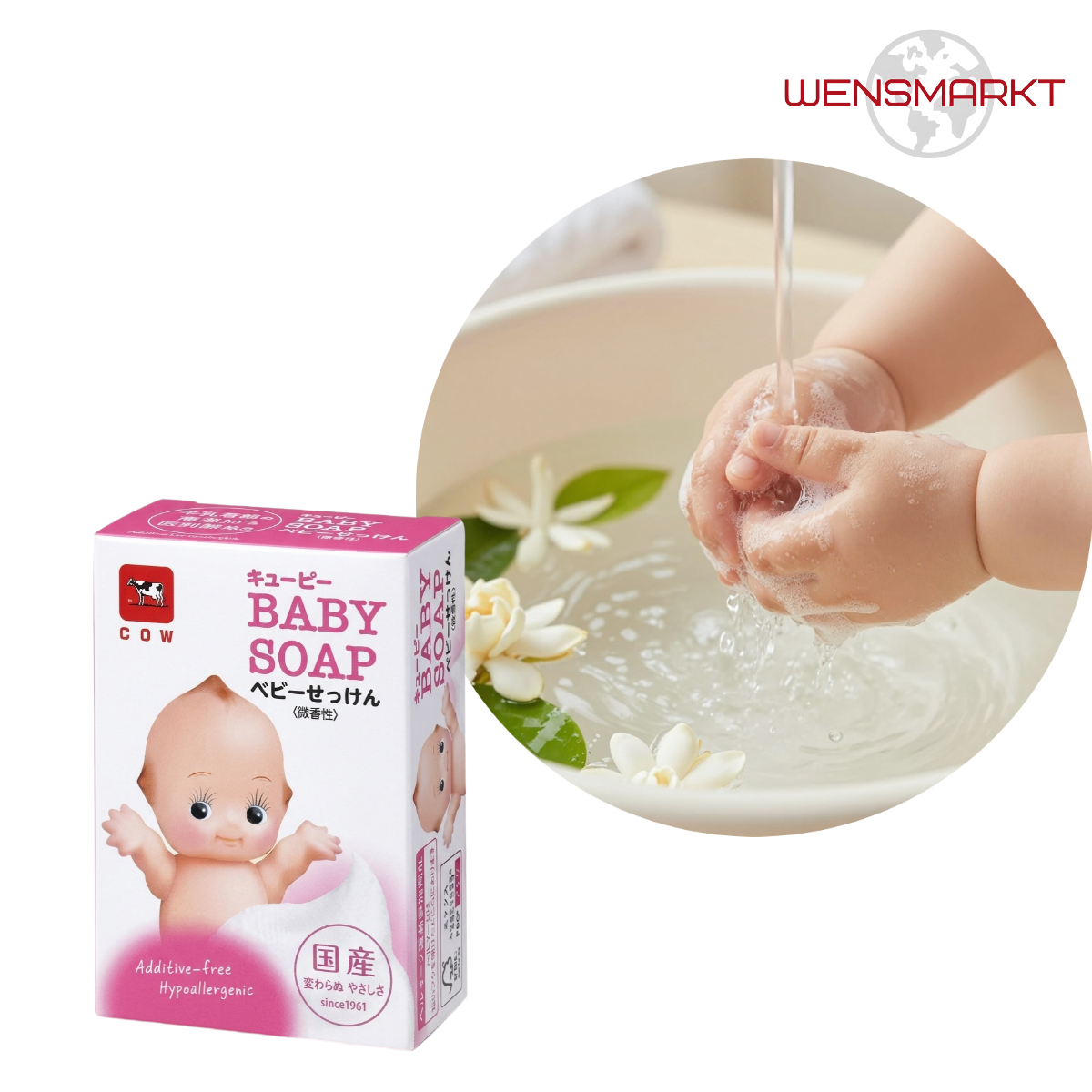 Kewpie COW Baby Soap – мыло, созданное специально для детей. Содержит экстракт гардении и сквалан, которые увлажняют и защищают чувствительную кожу от сухости. Гипоаллергенно.