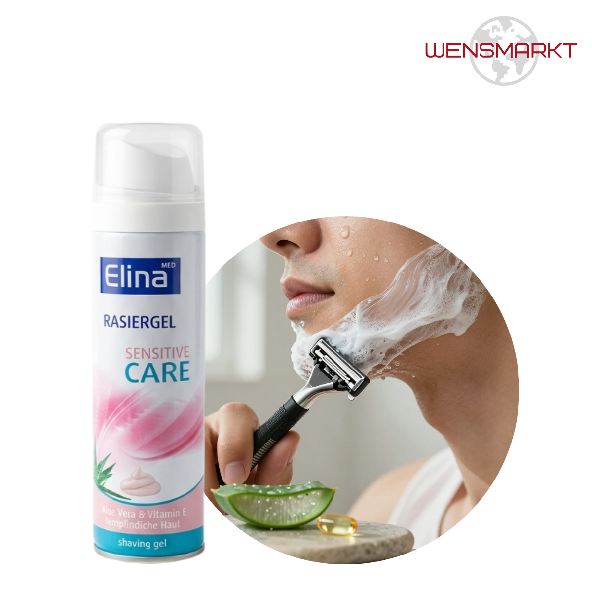 Elina Med Sensitive Care – гель для бритья, разработанный для чувствительной кожи. Алоэ вера увлажняет и снимает раздражение, витамин Е питает и способствует заживлению микропорезов.
