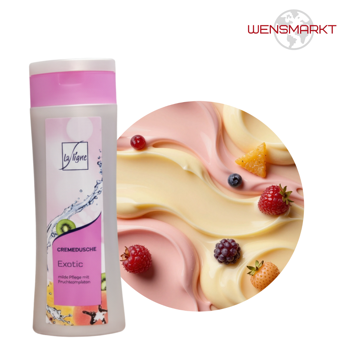La Ligne Exotic – гель-крем для душа с ярким фруктовым ароматом. Мягкая кремовая текстура бережно очищает, увлажняет и оставляет на коже легкий сладкий шлейф.