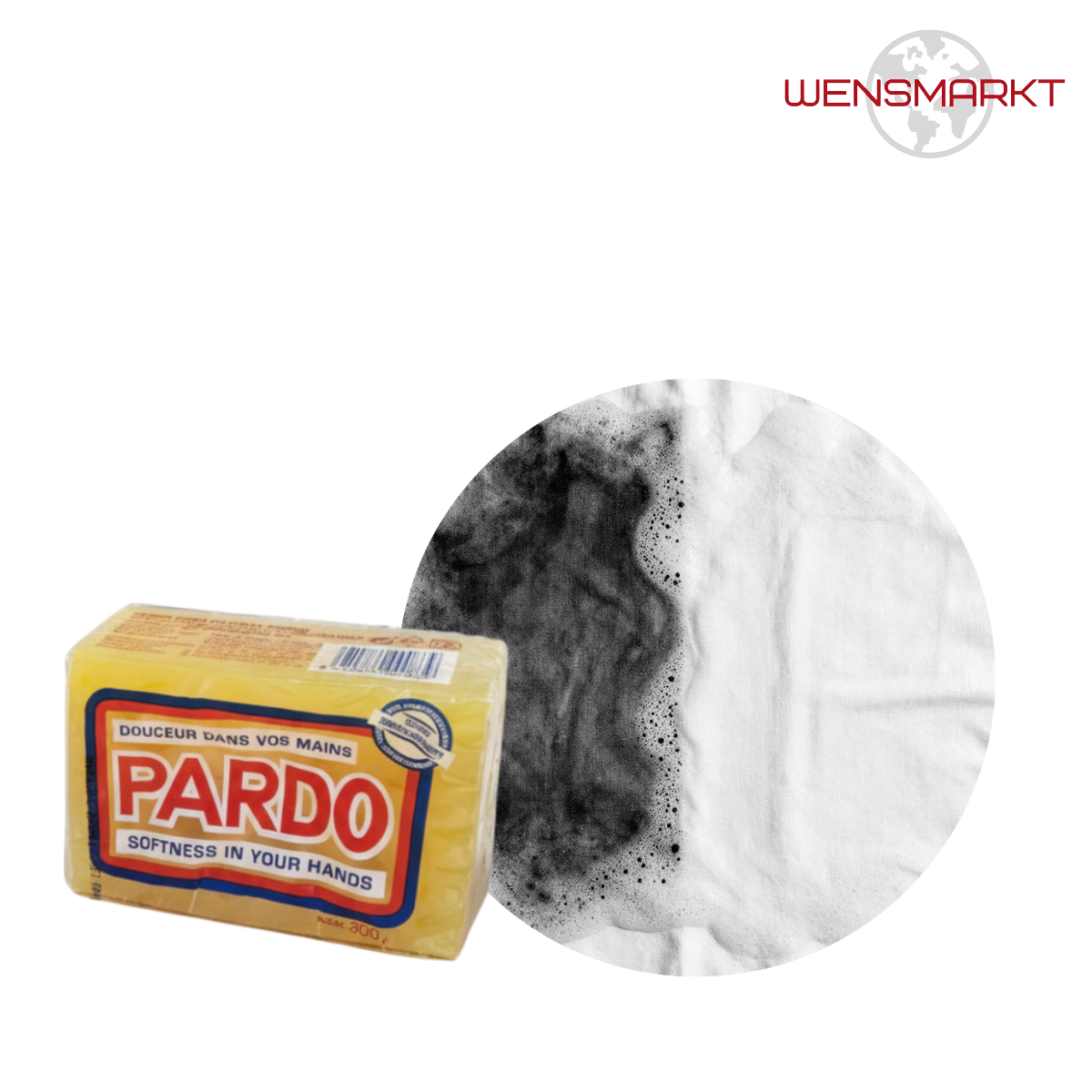 Pardo — натуральное мыло-пятновыводитель с добавлением желчи. Эффективно удаляет пятна жира, травы, крови, масляных красок. Подходит для предварительной обработки пятен и застирывания.