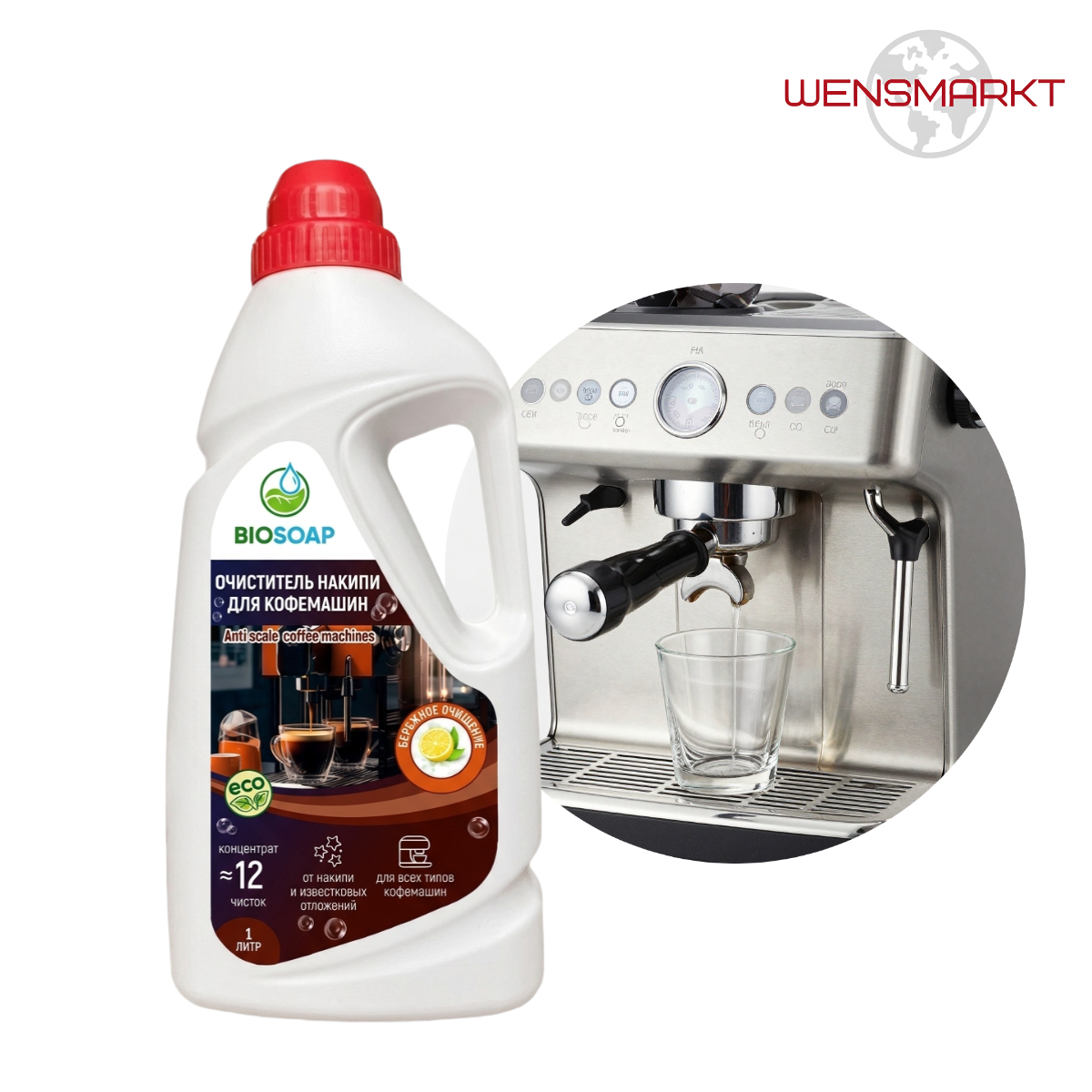 Специализированное средство для удаления накипи и известковых отложений в кофемашинах, эспрессо-машинах и капельных кофеварках. Бережно очищает внутренние компоненты, не повреждая уплотнители.