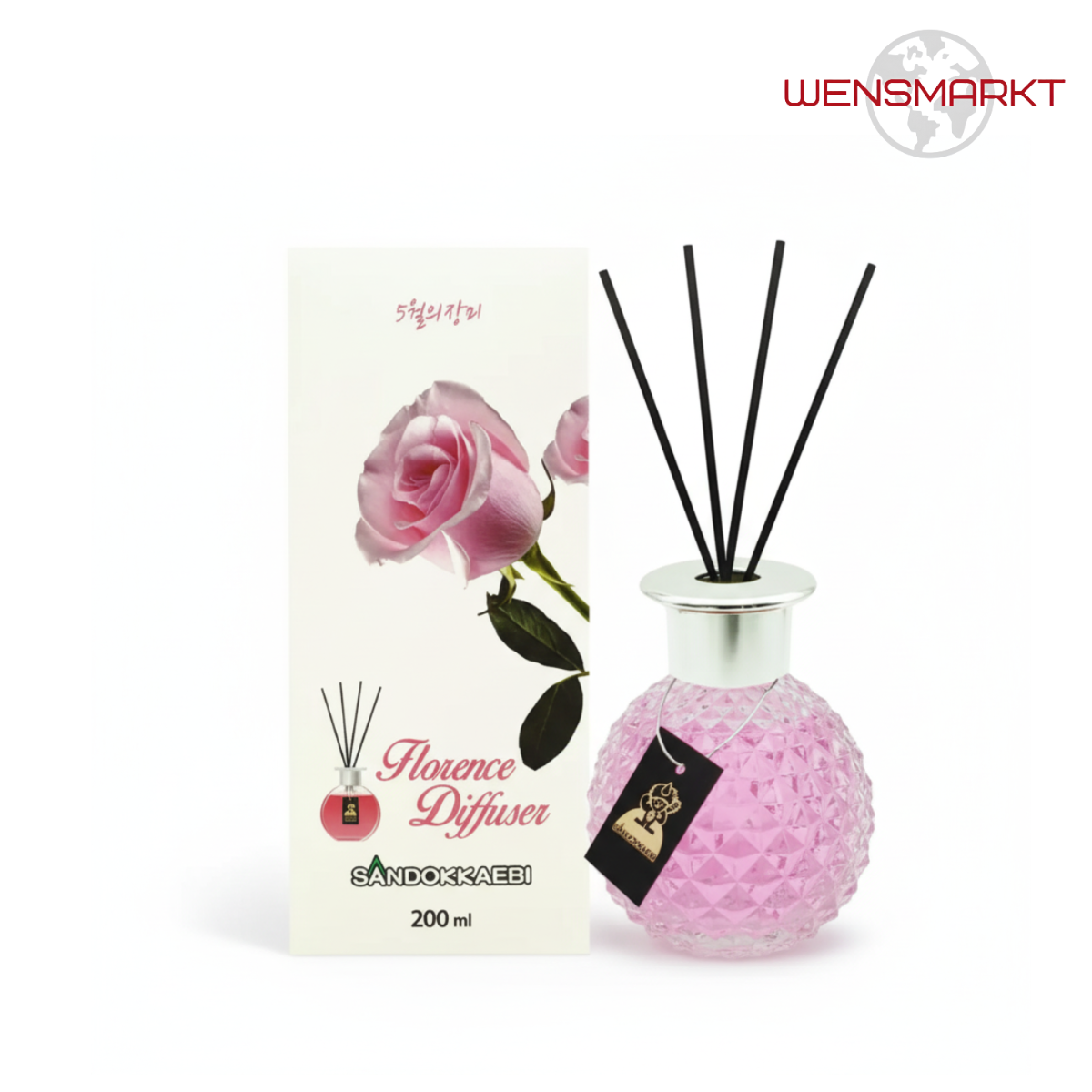 Аромадиффузор SANDOKKAEBI с ароматом розовый сад наполнит ваш дом утонченной романтикой и женственностью. Аромат розы — это классика, которая веками ценится за свой сладкий, чарующий и благородный запах.