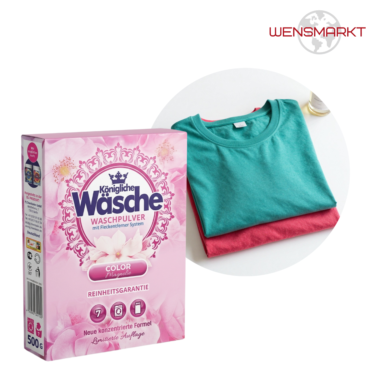 Königliche Wäsche Color Magnolie — стиральный порошок премиального качества для цветного белья. Уникальная формула с ароматом магнолии не только отстирывает, но и дарит длительную свежесть.