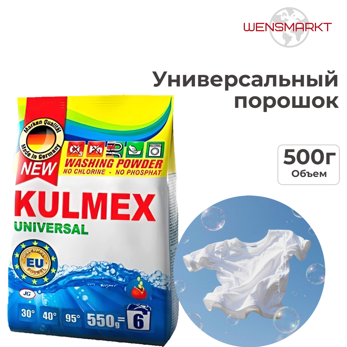 Kulmex Universal — надежное средство для стирки различных типов тканей. Эффективно удаляет загрязнения, подходит для замачивания и кипячения.